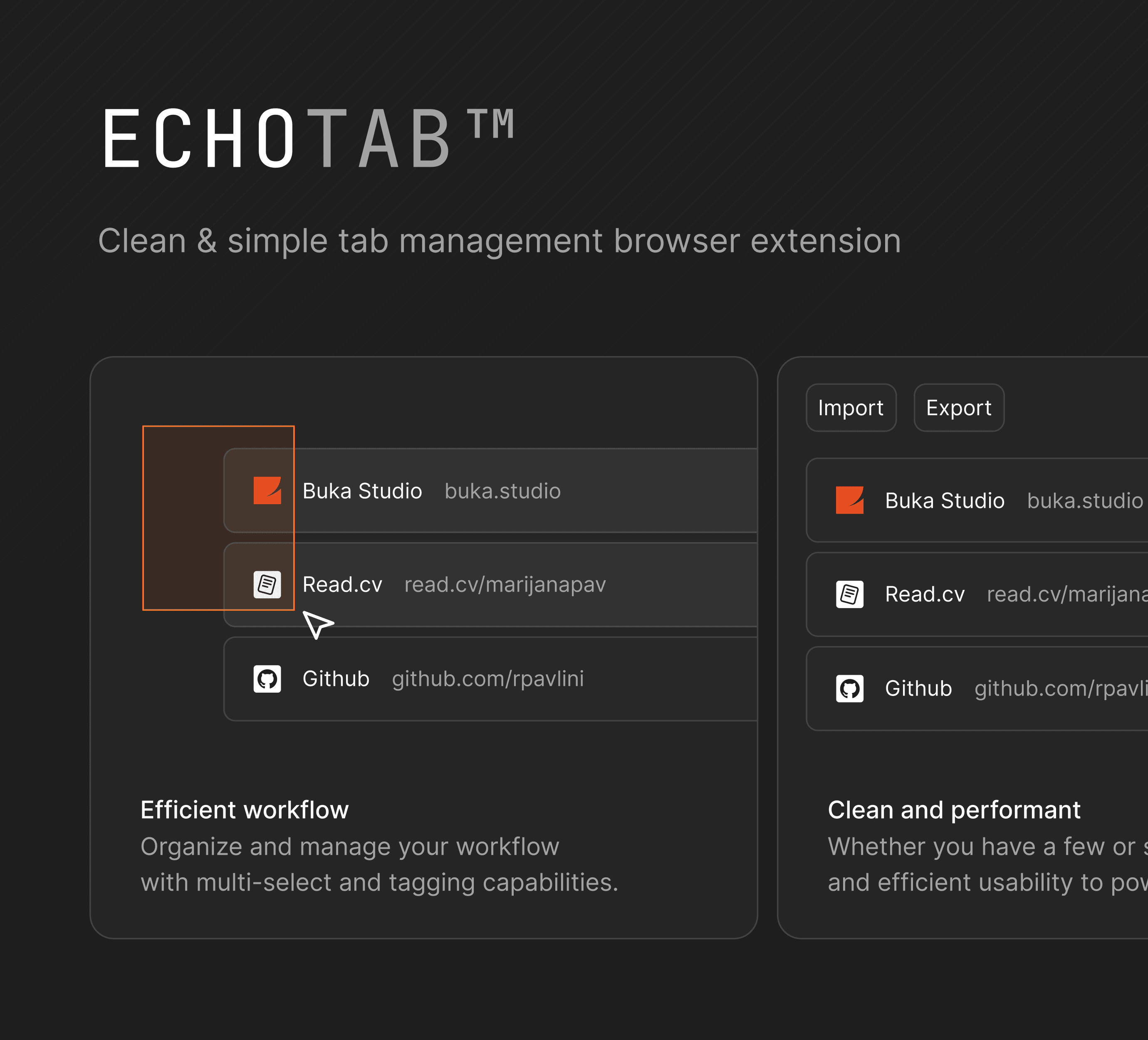 EchoTab Chrome Extension Landing page